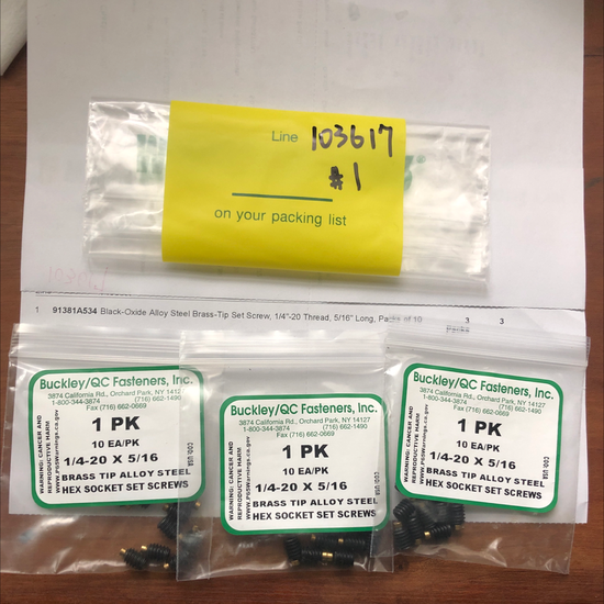 McMaster Carr Brass Tip Set Screw