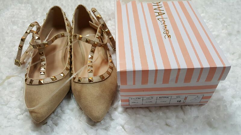 Nude adora studded t-strap pumps