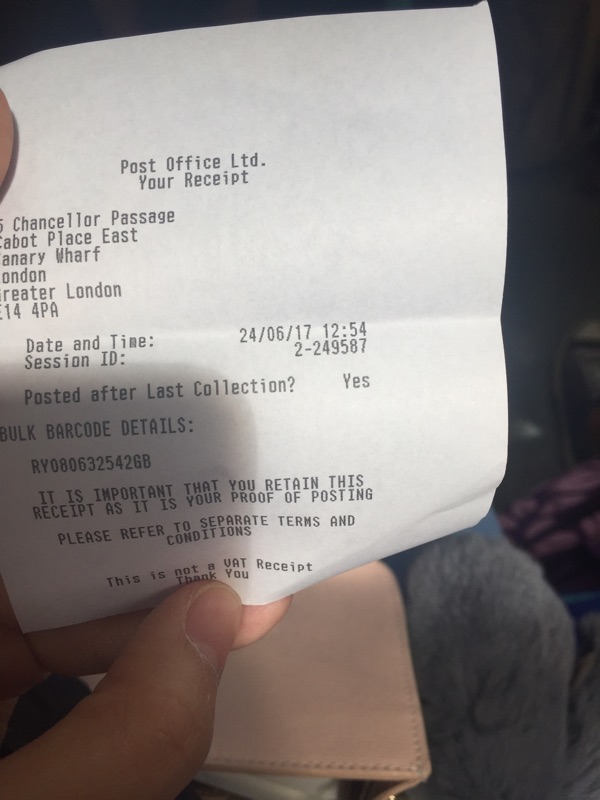 Box from GB 42917 2017-06-16 to United States of America