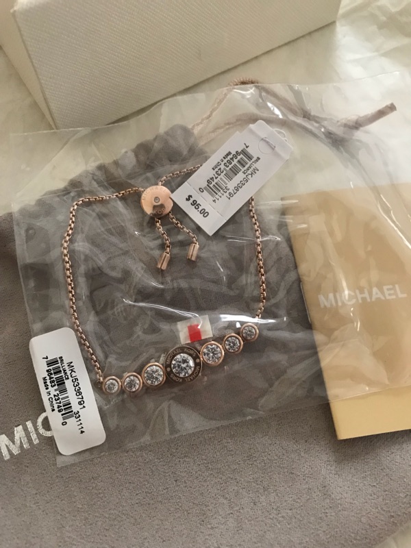 Michael Kors Cubic Zirconia Rose Gold-Tone Slider Bracelet