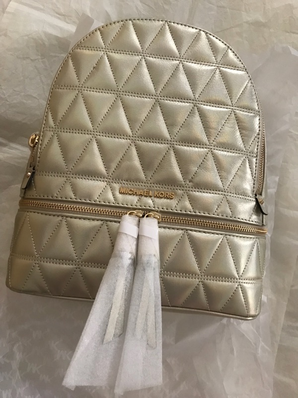 Michael Kors Rhea Medium Metallic Quilted-Leather Backpack