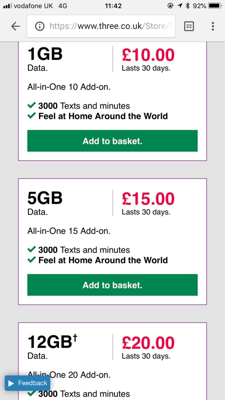 3 Pay as you go SIM card