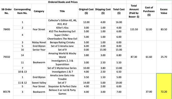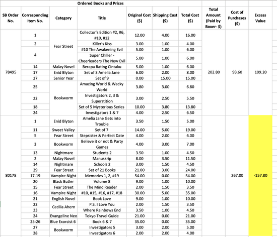 Total Cost of Items |