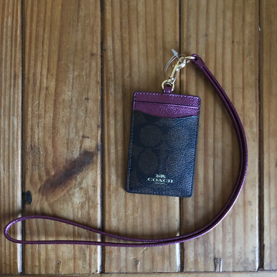 Coach Id Lanyard In Signature Canvas Metallic Berry