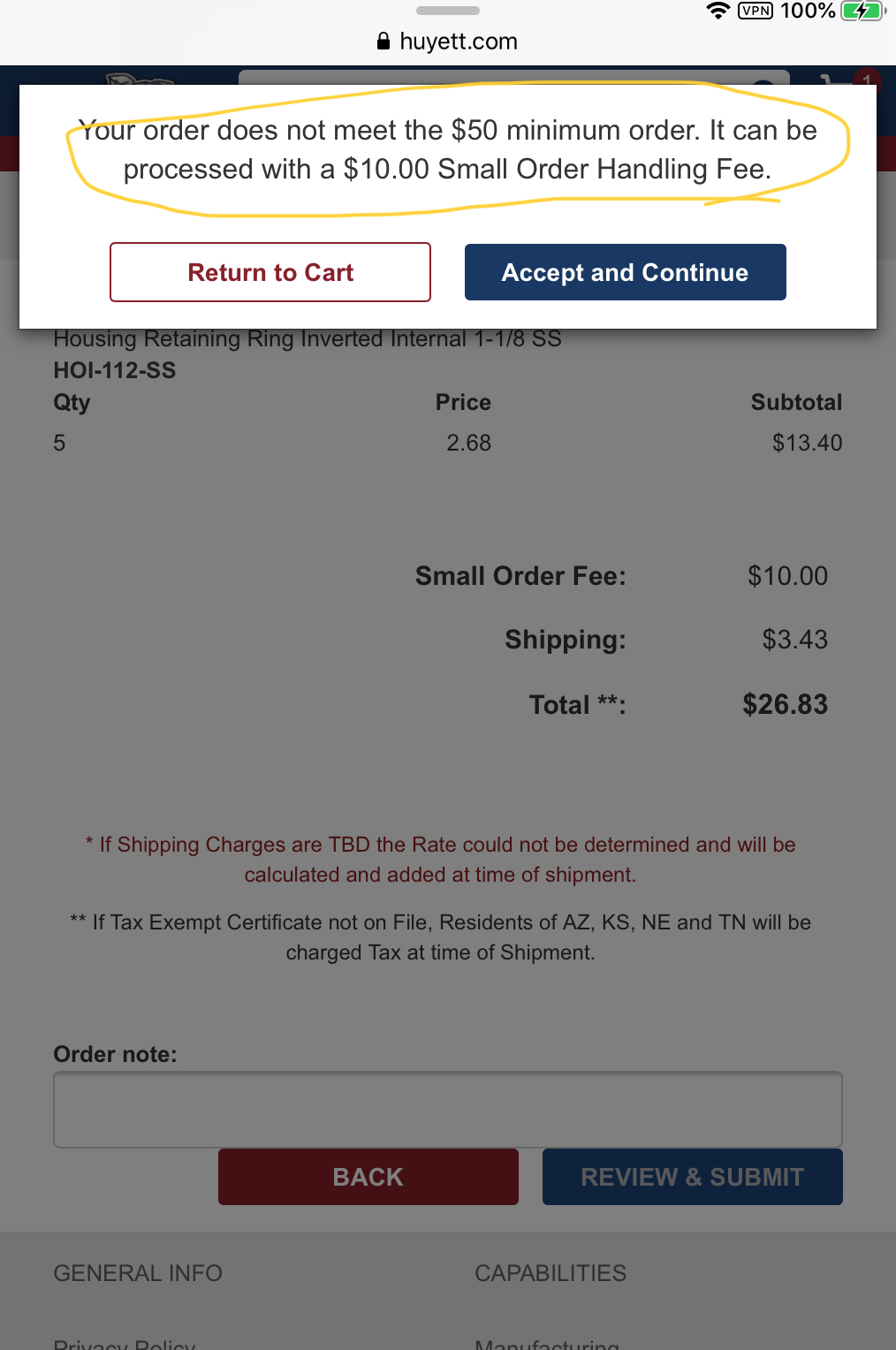 ShopandBox Service Fee (Minimum service fee) |