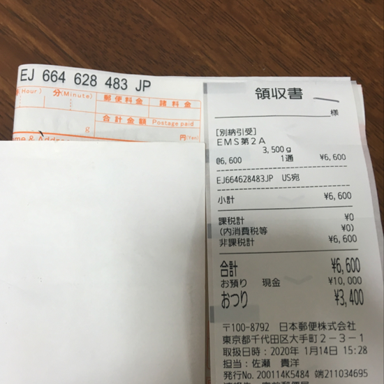 Box from JP 86569 2020-01-10 to United States of America